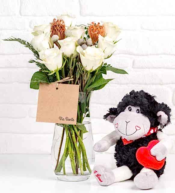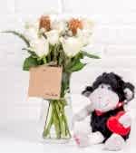 Özel Tasarım Vazoda Beyaz Güller ve Kuzu